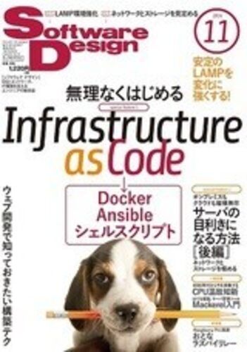 Software Design 2014年11月号の第1特集「Docker/Ansible/シェルスクリプト 無理なくはじめるInfrastructure as Code」という特集内に寄稿させていただきました。 僕は、特集の最終章として、これまでのLAMP環境のインフラストラクチャとなる部分について…